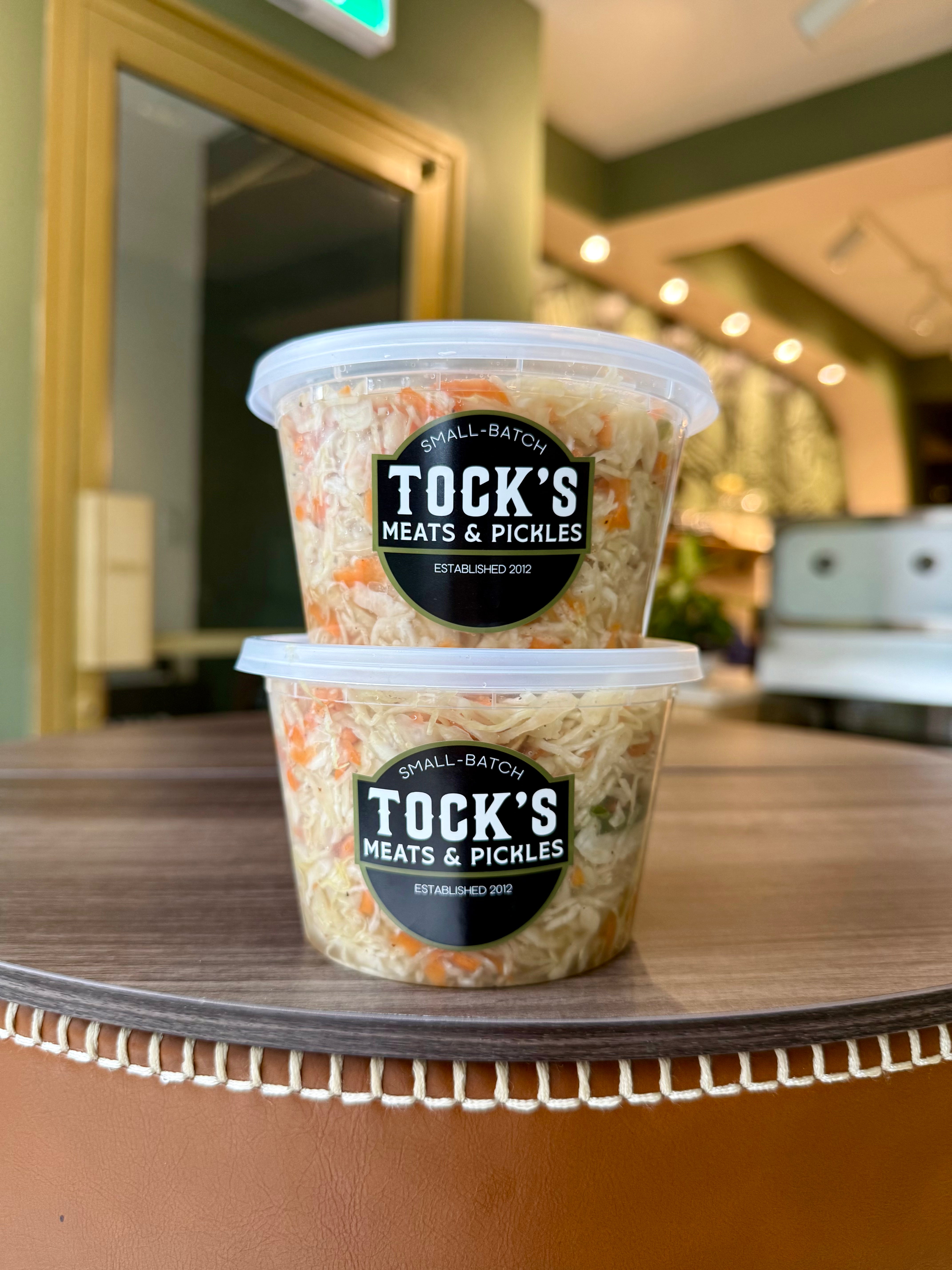 - Préparé frais à la façon Tock – Sans conservateurs. Sans arrière-goût désagréable. Juste une salade de chou pure et délicieuse qui fait toujours plaisir.