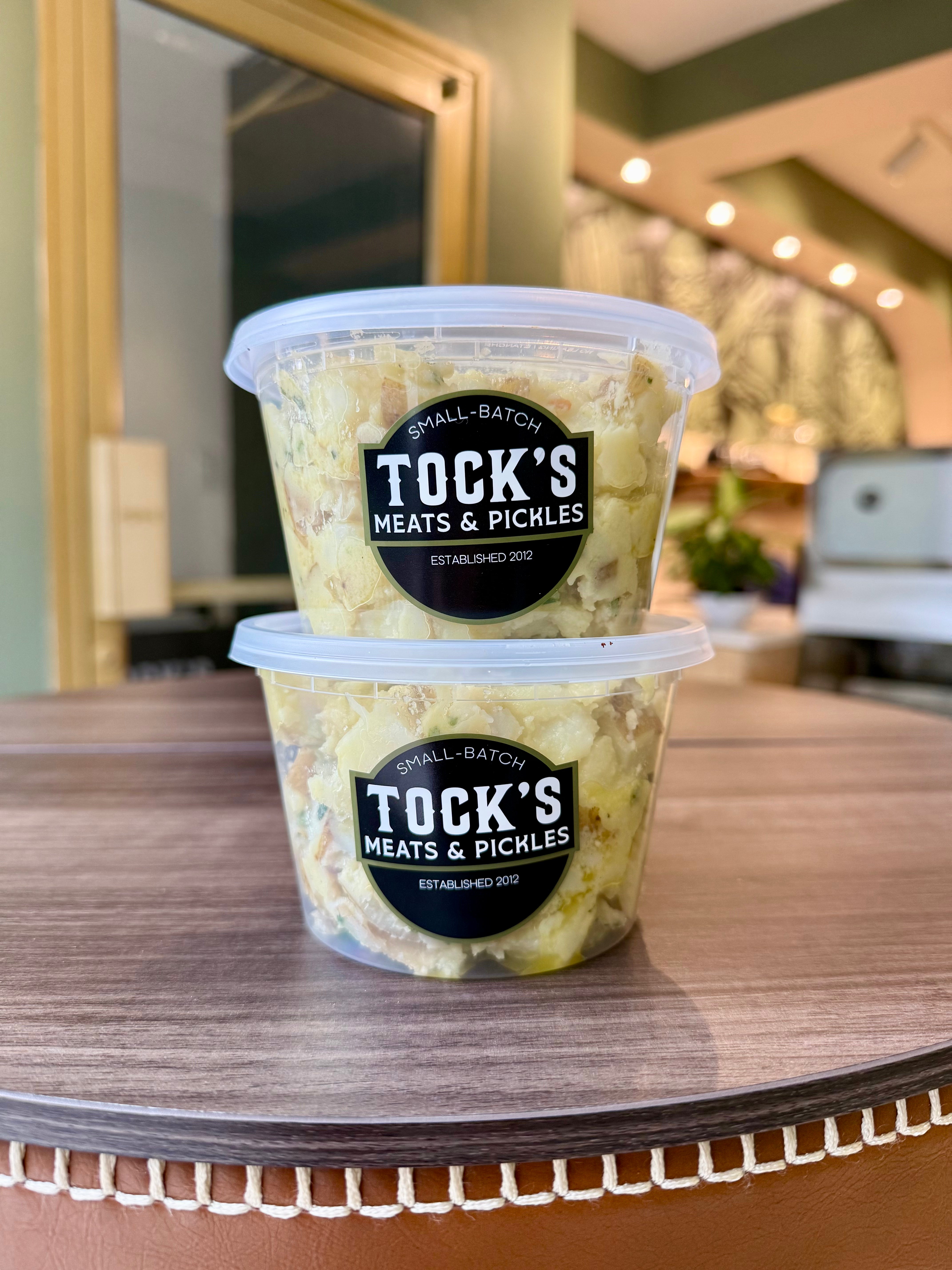 Une saveur d'huile d'olive extra vierge et d'herbes, façon Tock's. Notre célèbre salade de pommes de terre est préparée fraîchement en petites quantités avec des pommes de terre parfaitement cuites, de l'huile d'olive extra vierge de source unique, de la moutarde de Dijon, du vinaigre de vin blanc, du persil italien, des échalotes et l'assaisonnement idéal. Riche, copieuse, elle est irrésistible.